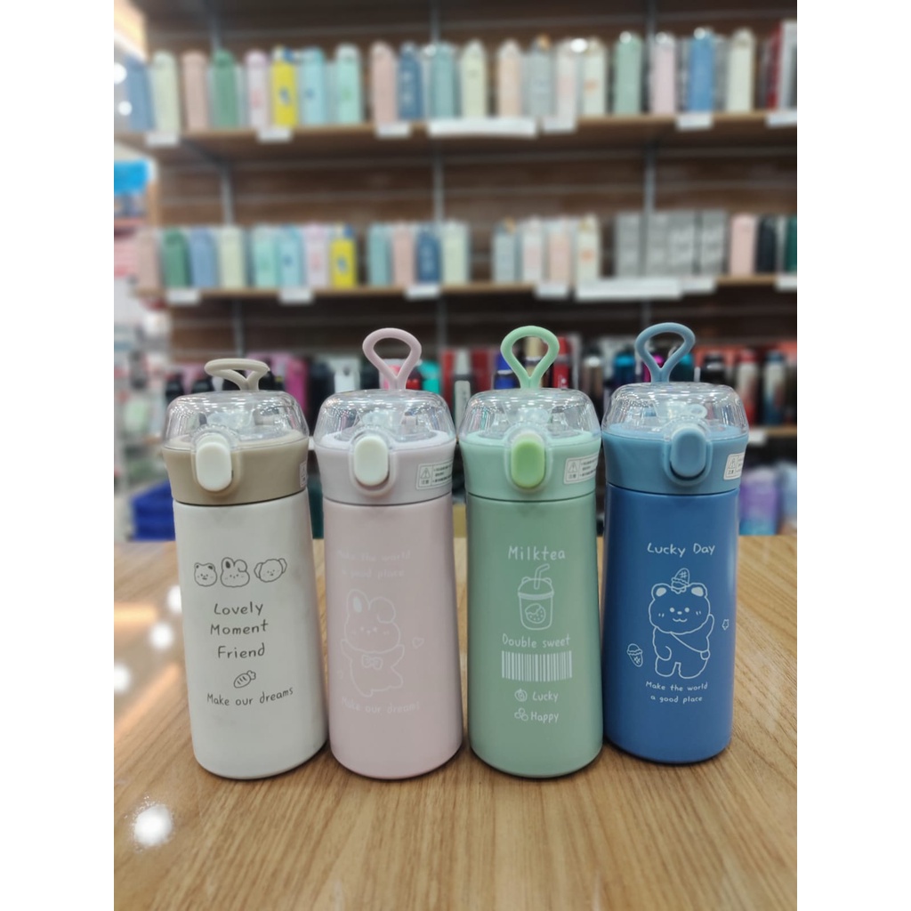 Garrafa Térmica Com Canudo Estampa e Frase Aço Inox 350ml ou 500ml