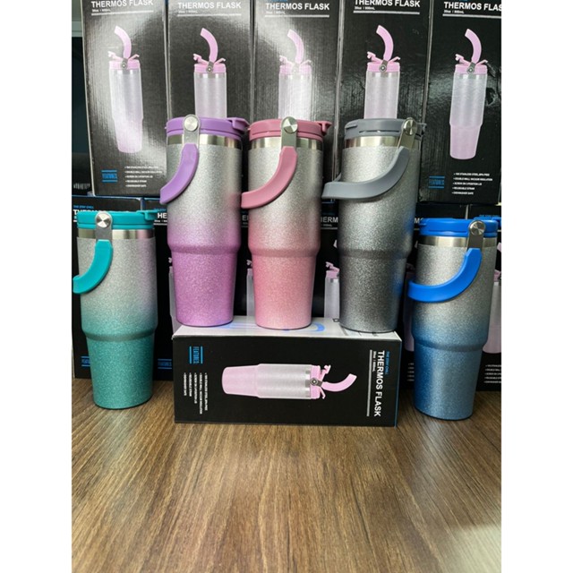 Garrafa Térmica com Glitter 900ml,chaleira portátil,Cores gradientes,,*com logo*