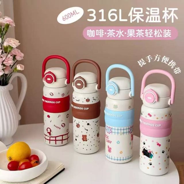 Garrafa térmica de aço inoxidável própria para alimentos, com capacidade de 600ml, à prova de vazamentos e com alça--16
