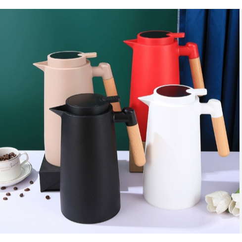 Garrafa Térmica de água, 1 Litro Garrafa Térmica Com Termômetro Led Para Chás / Café Design Moderno Cabo Em Madeira