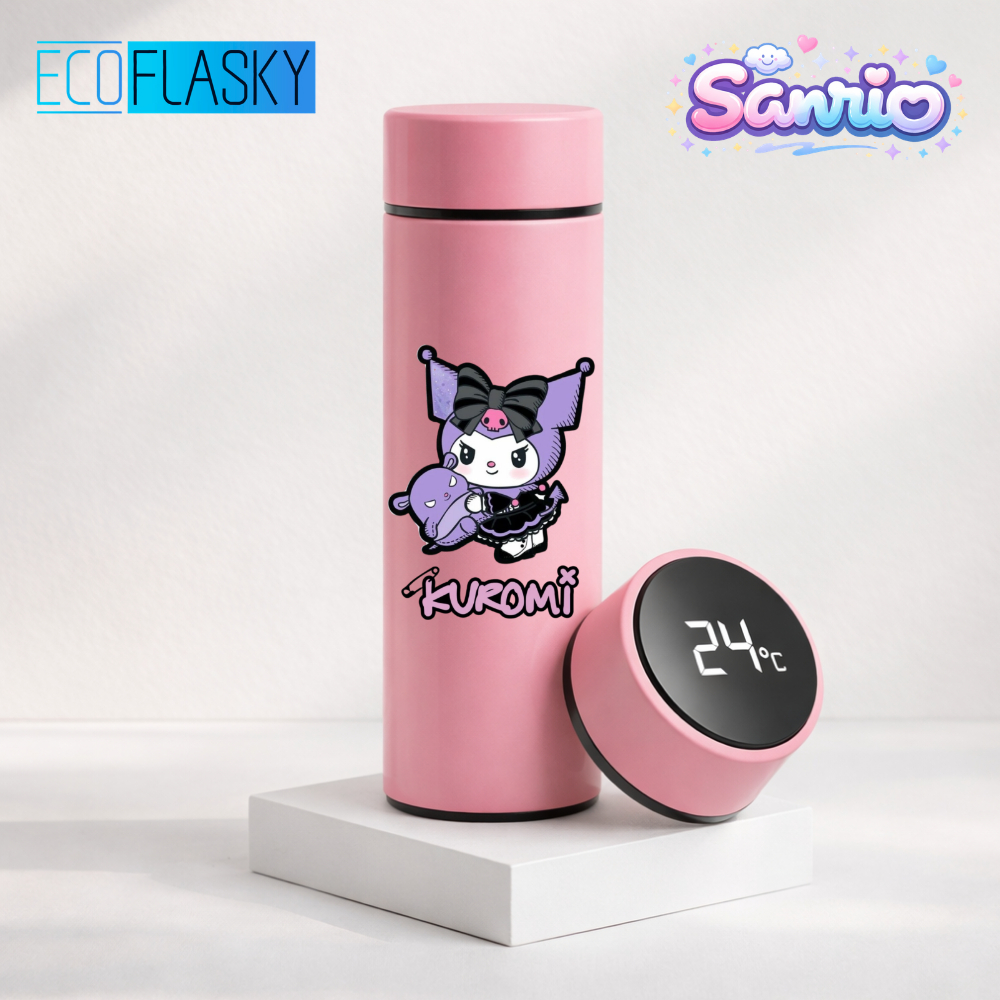 Garrafa Térmica De Água Infantil Aço Inox Estampada 500ml Kuromi Sanrio Termometro LED Digital
