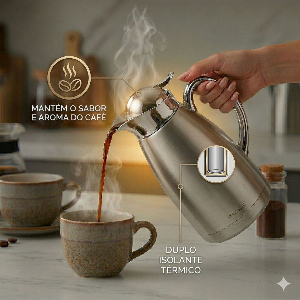 Garrafa Térmica de Café Chá Terere Aço Inox Bebida Quente ou Gelada Decoração Mesa Jantar Premium 1l ou 1,5l