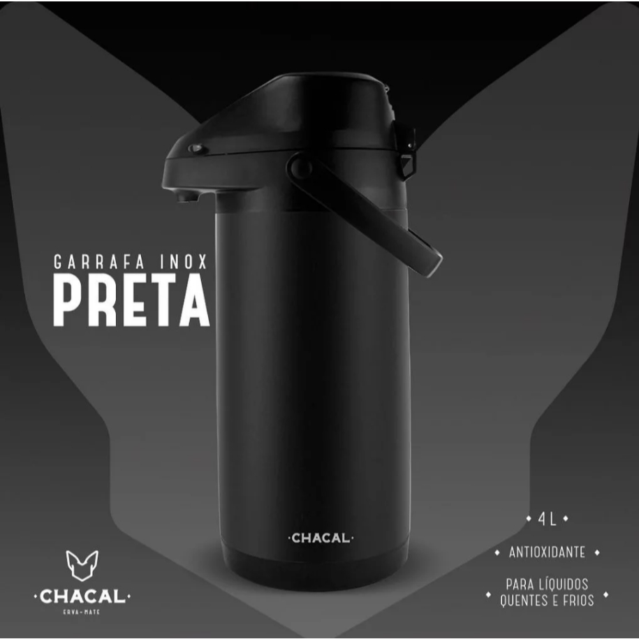 Garrafa Térmica de Inox 4,0 Litros Preta Chacal