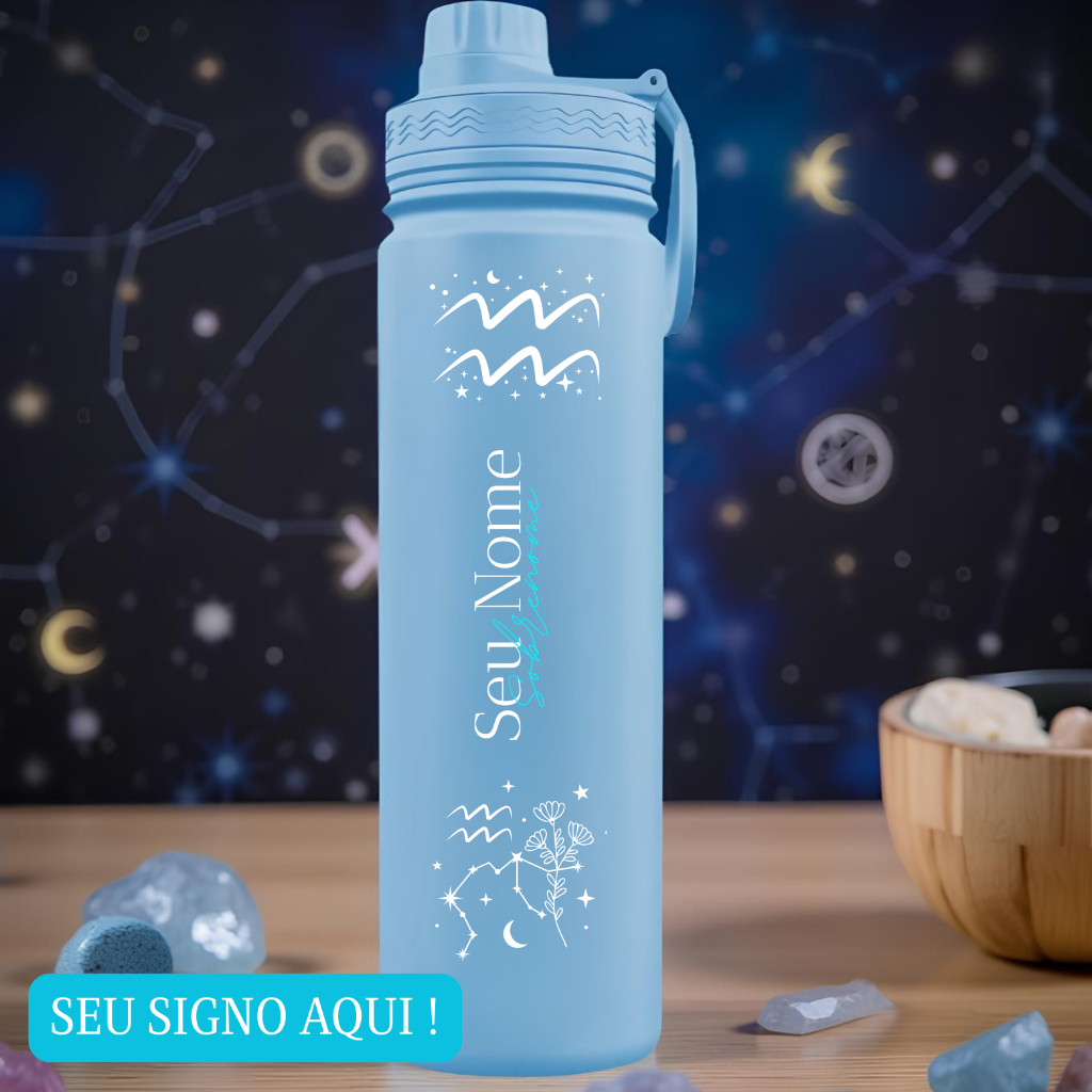 Garrafa Térmica Fresh Com Alça Personalizada Signo Flores com Nome e Sobrenome - Peixes