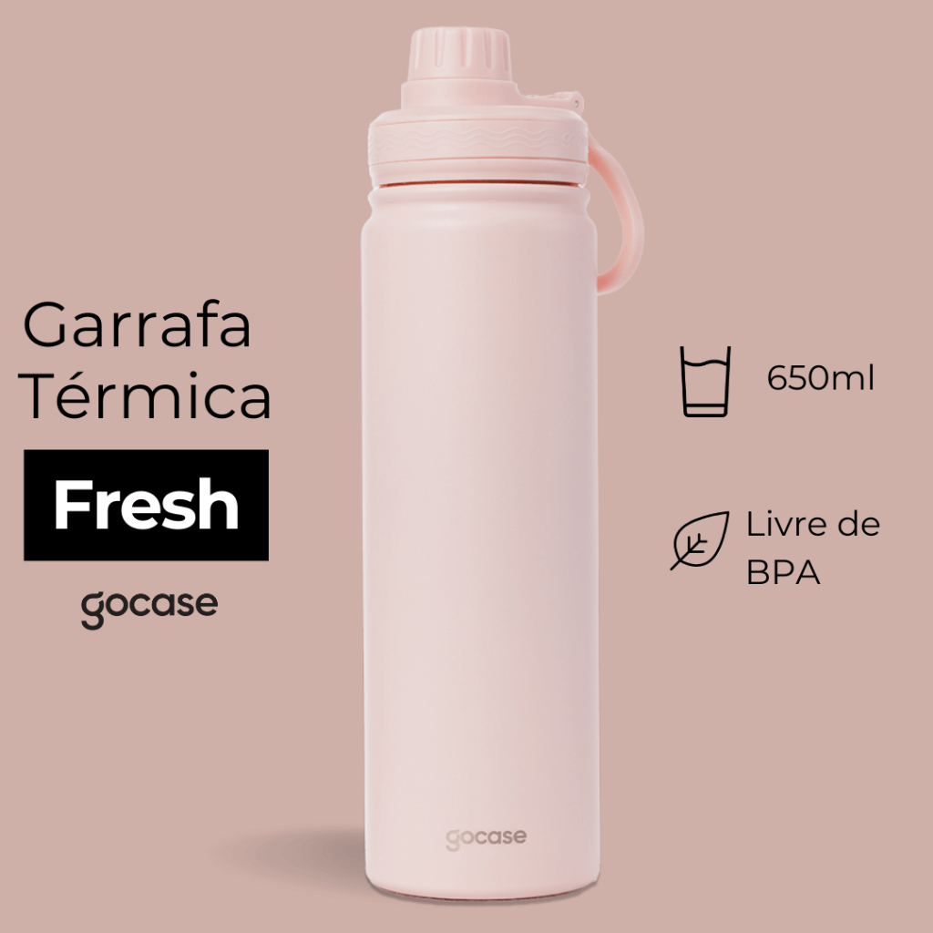 Com capacidade de 650ml, a Garrafa Térmica Fresh mantém sua bebida quente por até 12hrs ou fria por até 24hrs. Quanto mais fria/quente estiver a bebida, por mais tempo a Garrafa Fresh manterá a temperatura dela. Detalhe: Ela possui uma alça embutida na tampa para facilitar o transporte! Para uma bebida mais gelada, recomendamos utilizar gelo dentro da garrafa. Dimensões e Composição: - Capacidade: 650ml - Altura: 26,7cm (incluindo altura da tampa) - Diâmetro: 7,3cm - Parede dupla isolada a vácuo; - Espessura do material: a parede interior possui 0,4 mm, a exterior 0,5 mm; - Corpo em Aço inoxidável 304 (aço inoxidável 18/8); - Frasco livre de BPA. Como cuidar da sua Garrafa: 1. Lavar o produto antes do primeiro uso; 2. Não colocar o produto na geladeira ou no congelador, isso pode danificá-lo. Recomenda-se pré-aquecer ou pré-resfriar a garrafa com água antes de colocar o conteúdo, para mais tempo de conservação. 3. Não colocar na lava-louças. Não usar esponjas muito abrasivas ao lavar, risco de arranhar o produto. 4. Evitar contato com objetos pontiagudos e ásperos com risco de arranhar o produto. 5. Evitar contato com acetona, álcool e líquidos à base de cloro. 6. Certifique-se de que a tampa está fechada e a borracha bem posicionada antes de carregar o produto, para evitar que o líquido vaze. 7. Evitar o armazenamento de líquidos gaseificados na garrafa. Garantia: O produto tem uma garantia de 90 dias contra defeitos de fabricação.