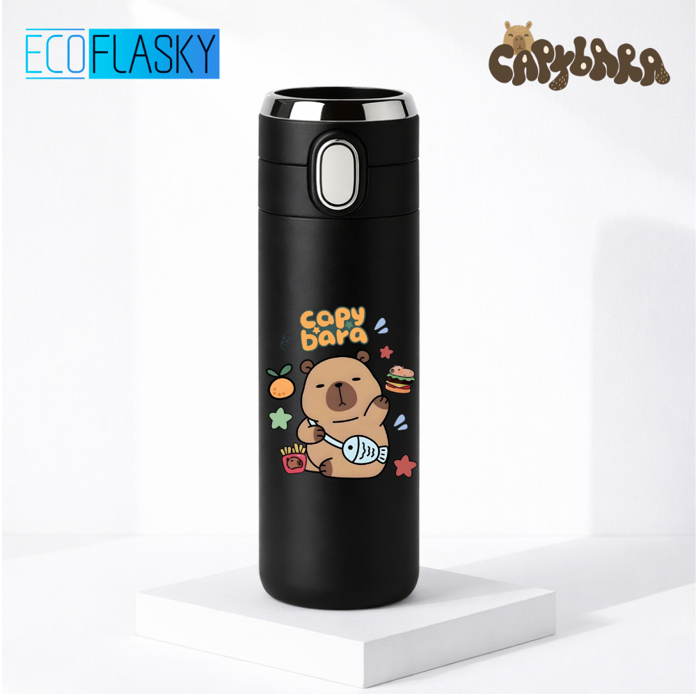 Garrafa Térmica Infantil Aço Inox Capivara Estampada Termometro LED Digital Temperatura 420ml
