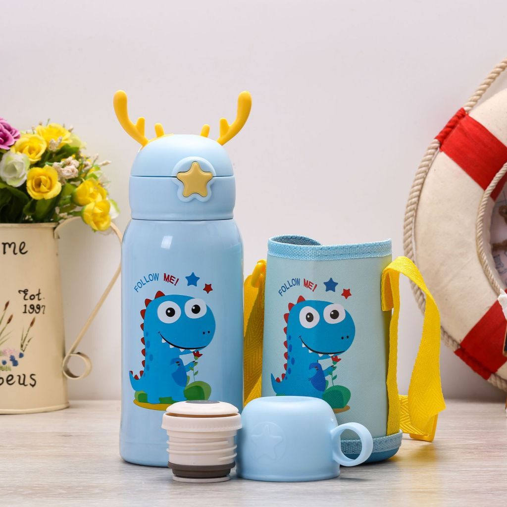 Garrafa Térmica Infantil de 500 ml Aço Inox 304 Com Alça Bolsa De Armazenamento -Canudo e Caneca