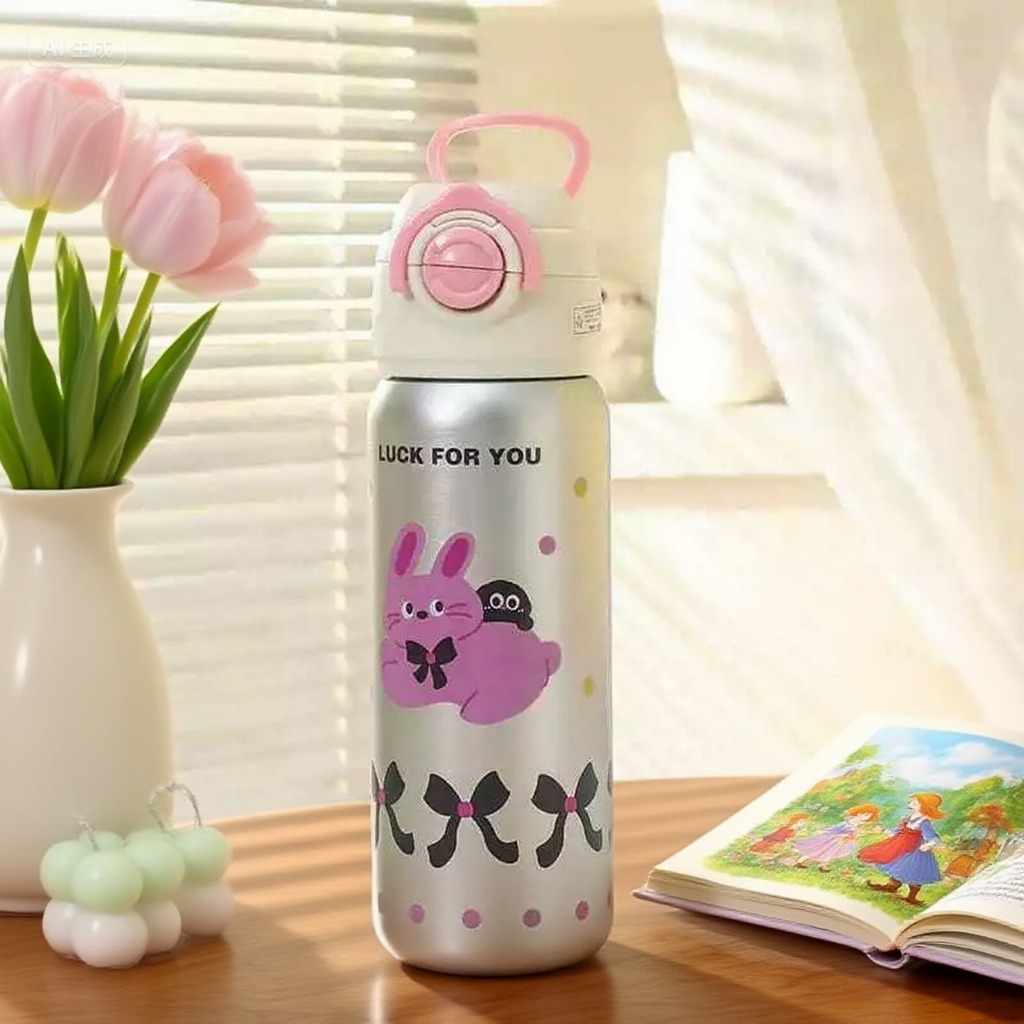 Garrafa térmica Personagem CAPACIDADE 500ml Preservação da temperatura tanto quente quanto fria. Projeto de vácuo duplo, parte interna da tampa de plástico e silicone antibacteriano. Material da garrafa: aço inoxidável Tampa com trava bem efetiva. Desempenho de isolamento: temperatura ambiente 22° C preenchido com água fervida 95 ° C em 6 horas, a temperatura da água permanecerá acima de 45 ° C