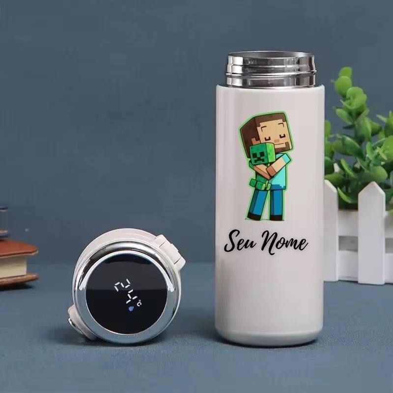 Garrafa Térmica Infantil Roblox e Minecraft Personalizada com Nome – Display Digital LED 420ml Inox