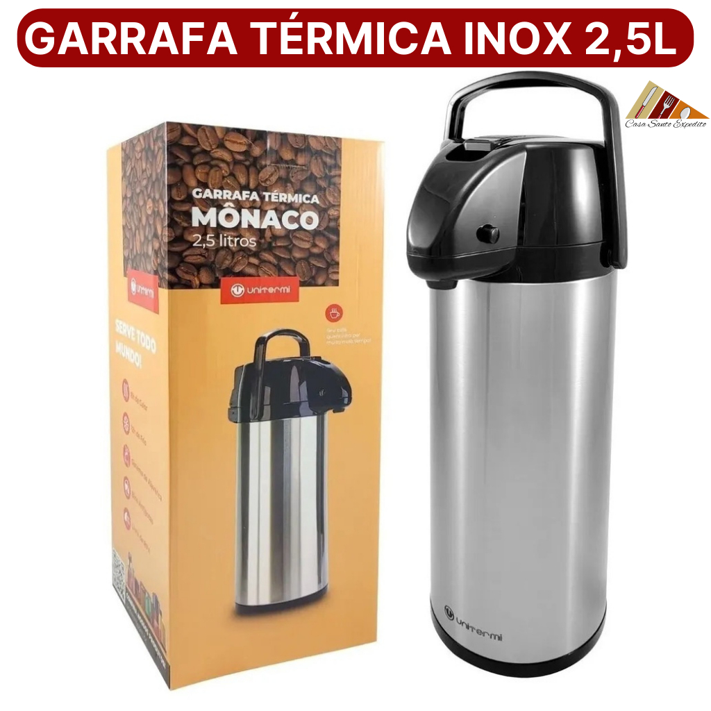 Garrafa Térmica Inox 2,5L Café Chimarrão Chocolate Quente Pressão Mônaco Unitermi 8H Conservação