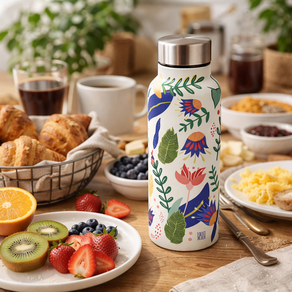 Garrafa Térmica Inox 800ml Floral Estilo FARM | Mantém Gelado/Quente | Portátil, Resistente e Moderna