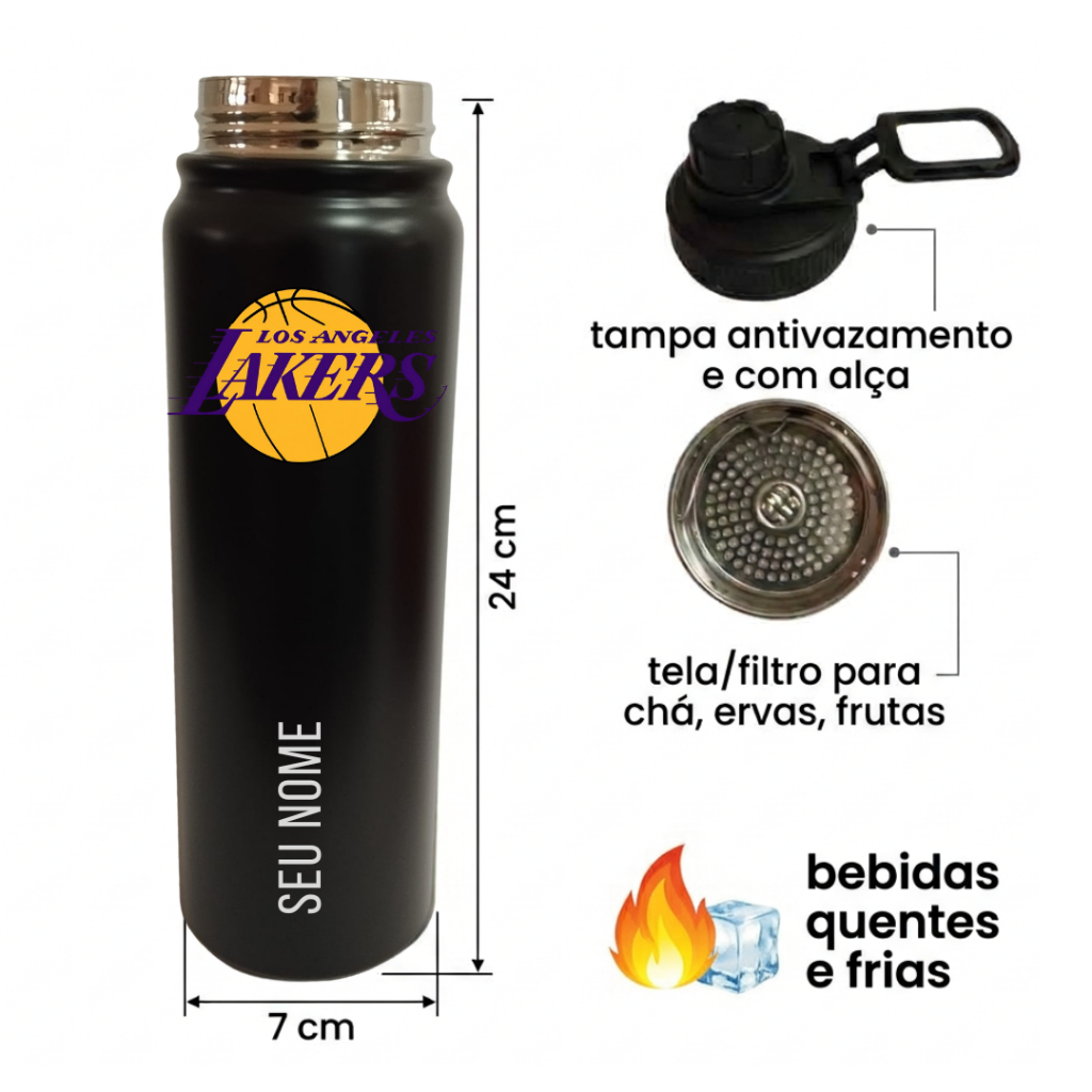 Garrafa Térmica Inox 800ml Personalizada Basquete Time Los Angeles NBA - Presente Fã Esportivo
