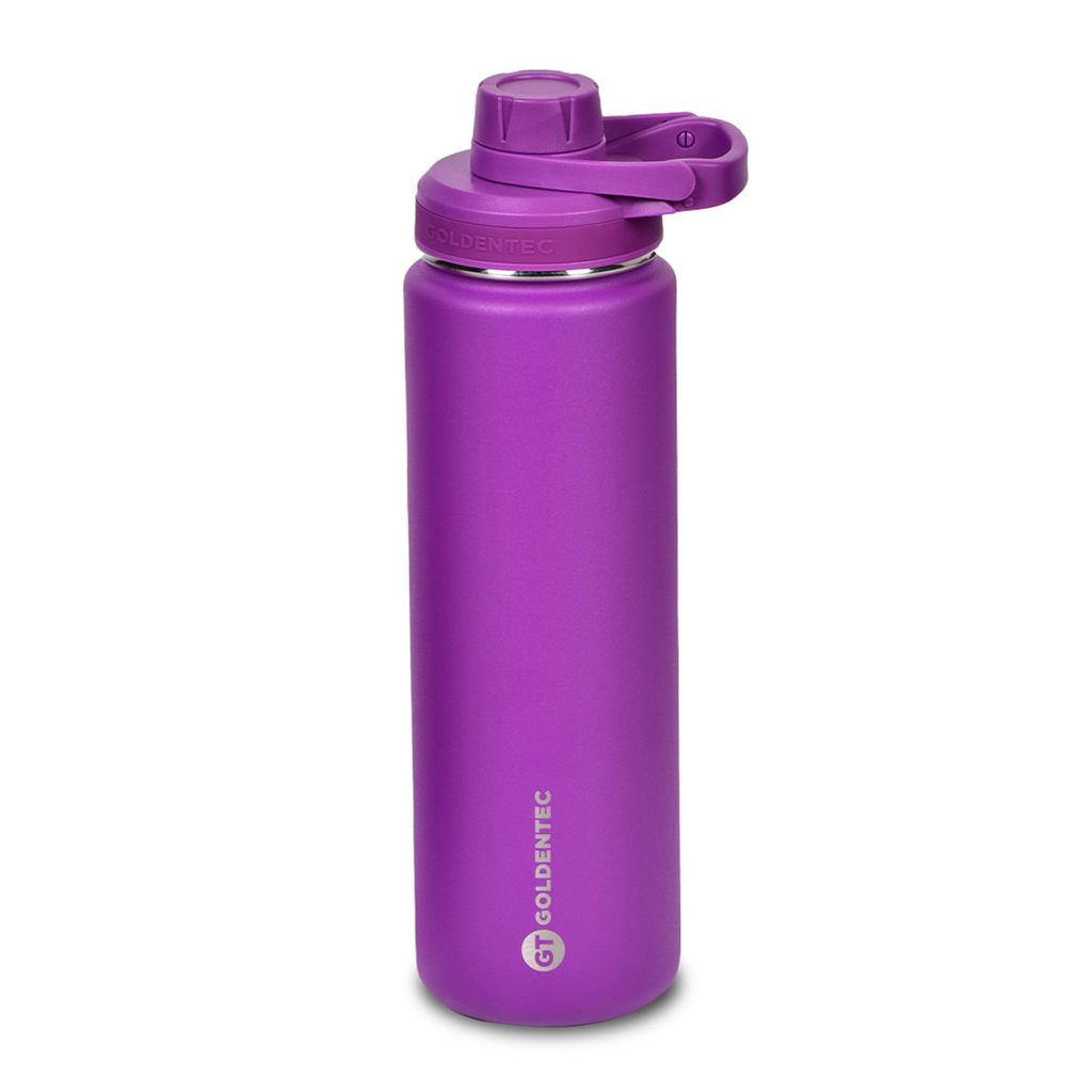 Garrafa Térmica Inox Goldentec GT Colors 750ml Roxo para bebidas quentes ou frias com tampa, bico e base emborrachada