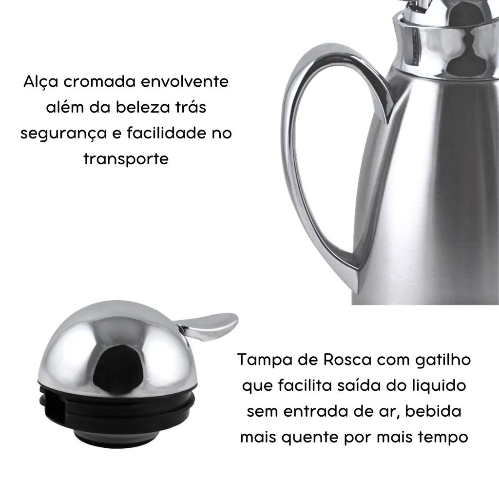 Garrafa Térmica Inox Jarra Ampola Vidro Café Quente Luxo 1L