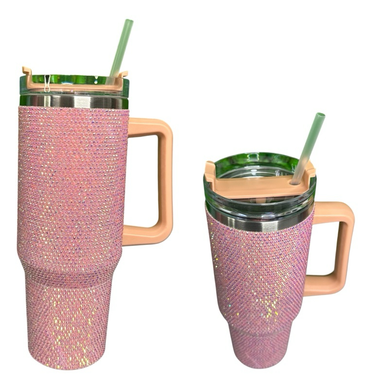 Garrafa térmica inoxidável 1200ml blogueiro com pedras brilhosas com tampa isolamento acrílico
