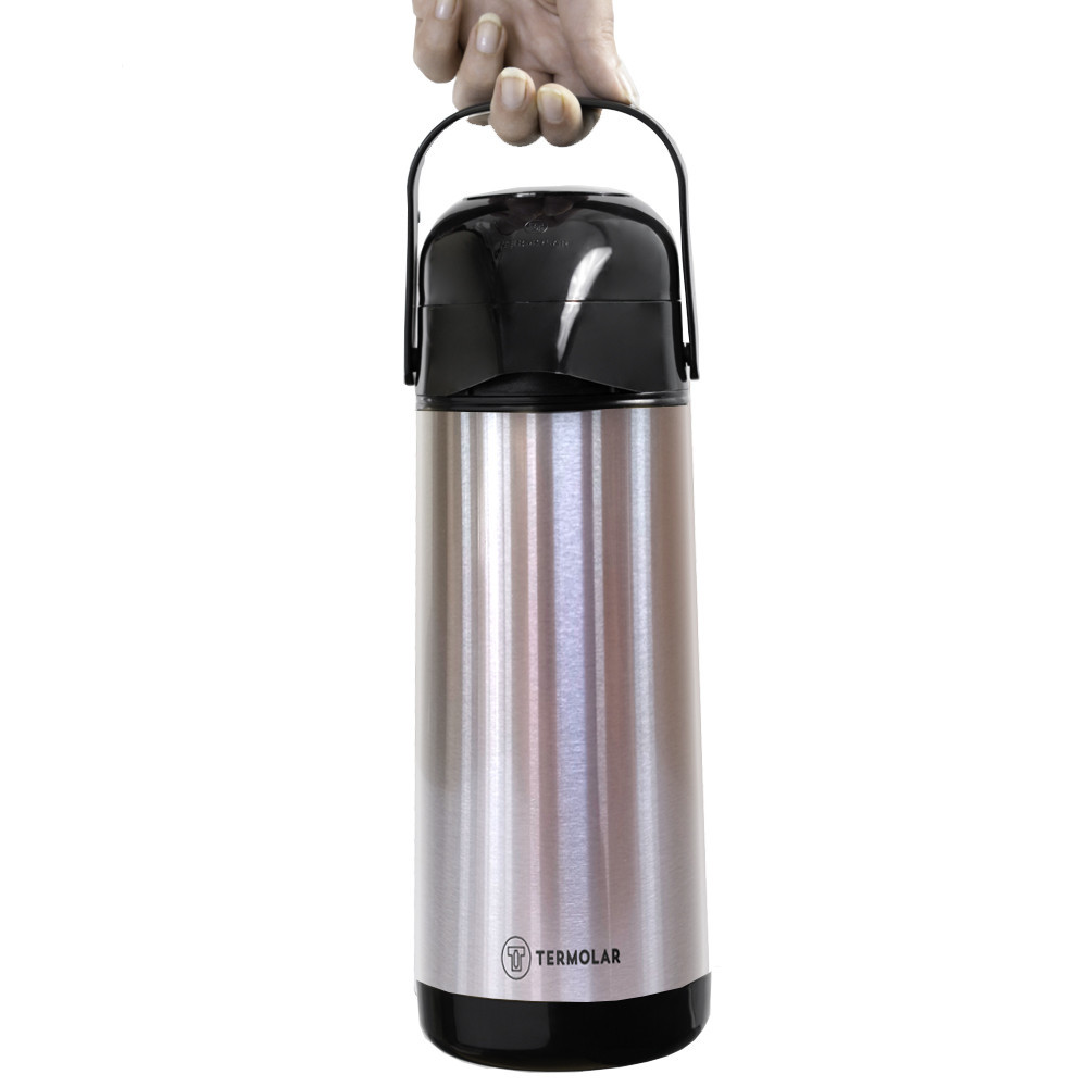 Garrafa Térmica Lúmina Inox 1 Litro Termolar A Lúmina é uma garrafa térmica de bomba com exclusivo sistema que não pinga, seu exterior em inox possui uma camada protetora de verniz que evita possíveis manchas, é ideal para acompanhar a rotina diária, trazendo qualidade e eficiência para os ambientes residenciais ou corporativos. Com a confiança e qualidade dos produtos Termolar, apresenta conservação térmica diferenciada, o que garantirá líquidos quentes ou frios por muito mais tempo. - ATENÇÃO: Garrafas com bomba devem ser usadas na vertical. NÃO inclinar e/ou deitar a garrafa. - Exterior em Inox - Jato forte e estabilidade ao bombear - Não pinga - Não deixa marcas de dedo ORIENTAÇÕES: Para aumentar a durabilidade dos produtos Termolar, escalde previamente por 2 minutos antes de colocar líquidos quentes ou frios. Para um melhor desempenho da temperatura, utilize a capacidade total da garrafa, visto que o tempo de conservação depende da temperatura inicial dos líquidos e o número de vezes em que o produto é aberto. Evite choque térmico: Não coloque bebida gelada e em seguida a bebida quente, e vice- Não olhe diretamente para dentro da garrafa e não agite o produto. Não exponha ao sol por tempo prolongado ou deixar próximo de fontes de calor. Não beba diretamente e nem use aquecedor elétrico. Evite abrir a tampa em excesso para que não ocorra perdas na conservação. Não coloque sua garrafa no microondas, nem na máquina de lavar louças. Não coloque cubos de gelo nas garrafas com ampolas de vidro e inox nem bebidas gaseificadas. Mantenha fora do alcance das crianças. LIMPEZA INTERNA: Insira duas colheres de bicarbonato de sódio e água quente dentro da garrafa. Deixe agir por 12h, retire o conteúdo e enxague a garrafa. Repita a lavagem completa uma vez por semana ou após o uso de café e leite. Guarde o produto aberto. LIMPEZA EXTERNA: Limpe com pano úmido e sabão neutro. Para a melhor limpeza, siga as orientações da bula que acompanha o produto. Não é necessário deixar a garrafa de molho. Seguindo essas orientações, as garrafas Termolar conservarão líquidos por muito mais tempo. IMPORTANTE: Não use abrasivos e produtos com cloro, pois prejudicam à longo prazo a conservação térmica da garrafa. ATENÇÃO: Garrafas com bomba devem ser usadas na vertical. NÃO inclinar e/ou deitar a garrafa. Referencia: 149 - Código: 9751E - Modelo: Lúmina - Marca: Termolar - Cor: Inox com Preto - Acabamento: Lisa - Capacidade: 1 Litro - Conservação Térmica Quente: 12 Horas - Conservação Térmica Frio: 24 Horas - Isolamento Térmico: Ampola de Vidro - Livre de BPA: Sim - Material Atóxico: Sim - Material Externo: Inox - Sistema de Servir: Bomba de Pressão Dimensões Aproximadas: - Altura: 31,3cm - Largura: 11,8cm - Comprimento: 14,4cm GARANTIA: Os produtos e componentes plásticos são garantidos por 90 dias contra defeitos. Não incluem na garantia problemas por uso indevido do produto ou quebras