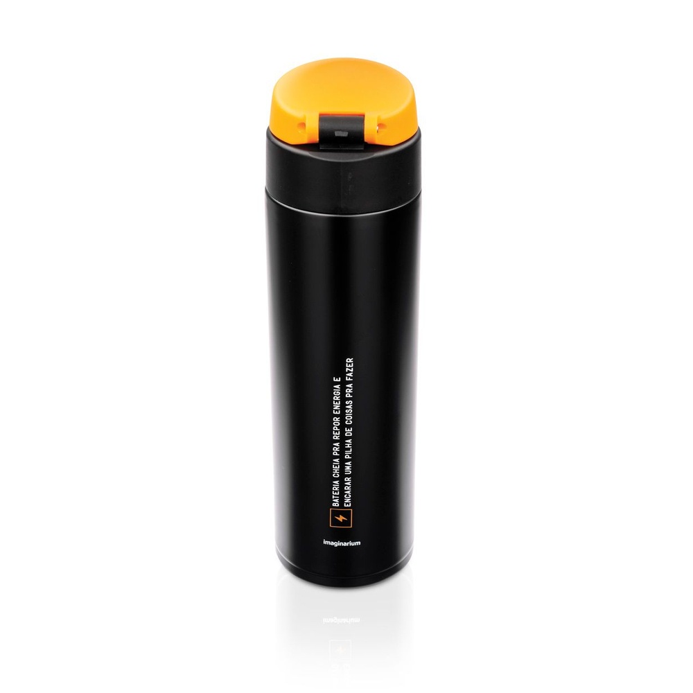 Tá na pilha com a correria do dia a dia e precisa de + disposição e - sede? Então você precisa da Garrafa Térmica Na Pilha. Com capacidade de 450 ml, pra "recarregar" suas energias o dia todinho. Além disso, essa garrafa é térmica (aço inoxidável)! Ou seja, mantém sua bebida quente por até 6 horas ou fria por até 16 horas. Temperatura ideal por muito mais tempo, por onde você for! Não precisa ficar pilhado(a): Com alguns clicks essa garrafa térmica pode ser sua agora! Contém 1 unidade. Tamanho único. Material: Aço inoxidável e plástico. Capacidade: 450 ml. Obs.: A temperatura do líquido pode variar de acordo com a temperatura externa do ambiente. Atenção: Não coloque o produto na geladeira, no congelador ou no micro-ondas. Antes de tirar ou colocar a tampa, deixe o bocal aberto. Não é à prova de pequenos vazamentos, carregue o produto apenas na posição vertical. Não coloque o produto em mochilas ou bolsas. Choques ou quedas podem danificar o produto.