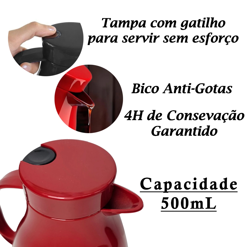 Garrafa Térmica para Café Água Chá Chimarrão 500mL Bule Gatilho