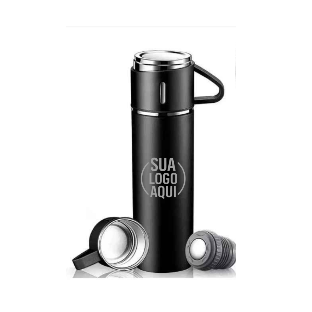 Garrafa Térmica Personalizada 500ML com 3 Xícaras Logo ou nome