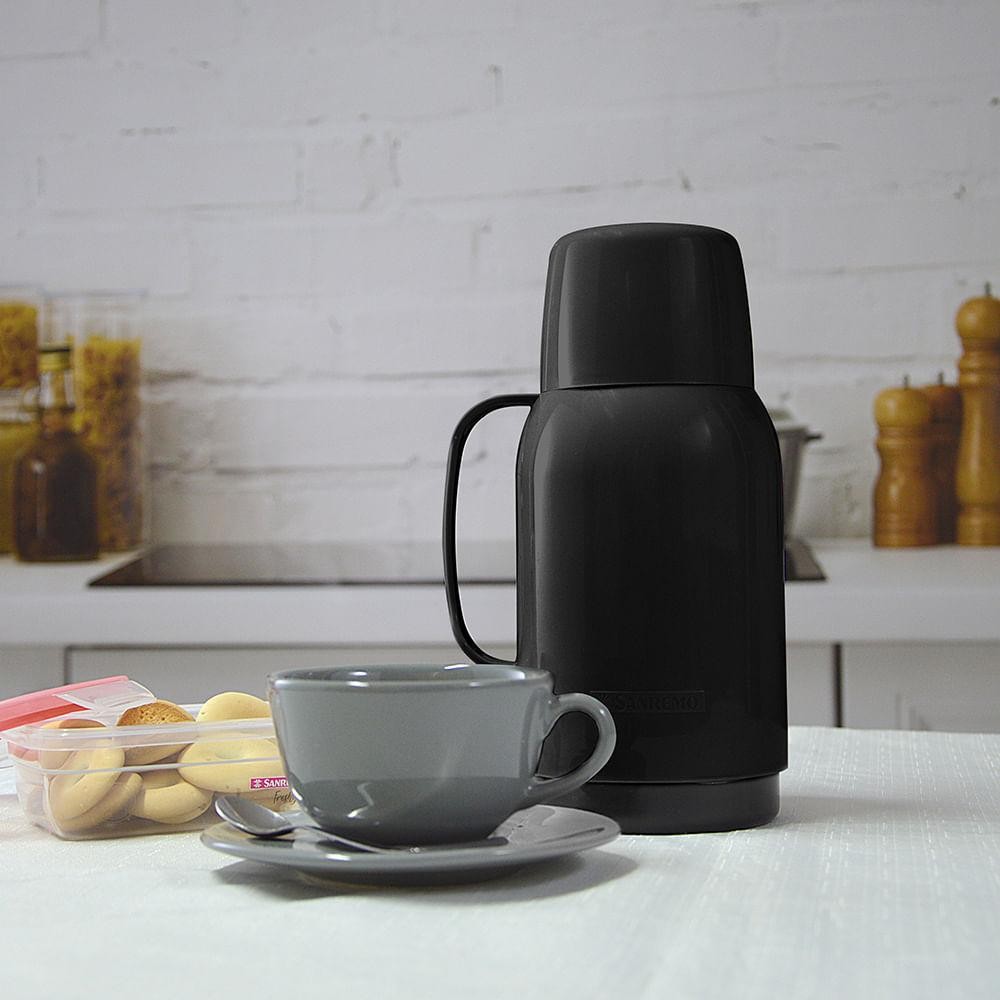 Garrafa Térmica Plástica Gostar Preta 750ml Termic Sanremo O nome é Garrafa Térmica Gostar, mas você vai mesmo é se apaixonar. Design clássico com alça ergonômica, sistema que evita pingos e tampa que pode ser usada como copo. É resistente, possui superfície polida e brilhante, fechamento de rolha, tampa que pode ser utilizada como copo e sistema anti pingo. - Design clássico e opções de cores. - Excelente manutenção de temperatura: 12h gelados e 6h quentes. - Para melhor conservação de temperatura utilize a capacidade total desta térmica: 750ml. - Ideal para o dia a dia ou para passeios e viagens. - Todos os produtos Sanremo são atóxicos: livres de BPA. - Ampola em vidro. Medidas: 27,5 x 11,5 x 15,1 cm (A x L x C)