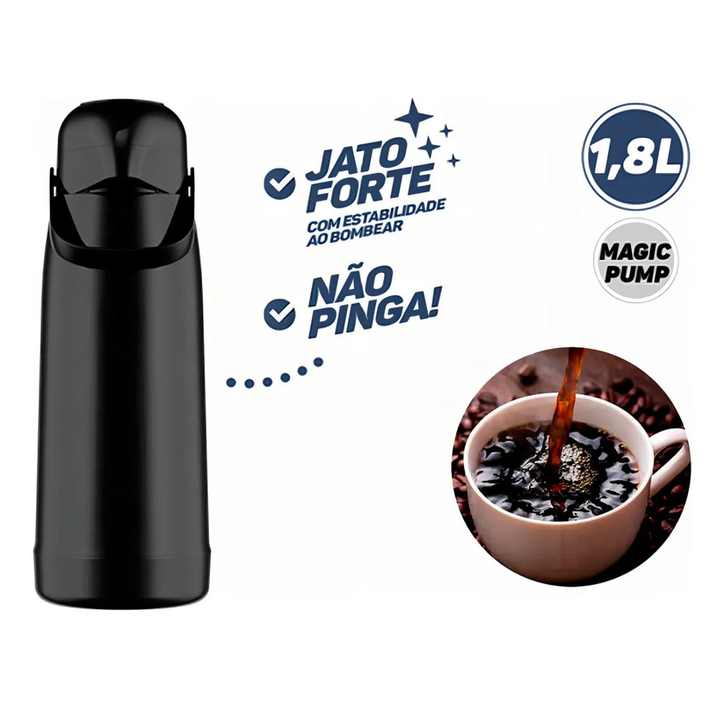 Garrafa Térmica Termolar 1,8L Magic Pump Original– Conserva Quente e Frio
