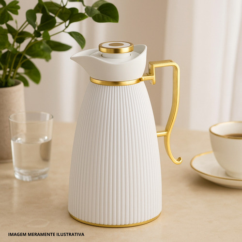 Garrafa Térmica Zaya Tuut 1L Canelada Design Sofisticado, Mantém Bebidas Quentes E Frias, Ideal Café E Chá Off White