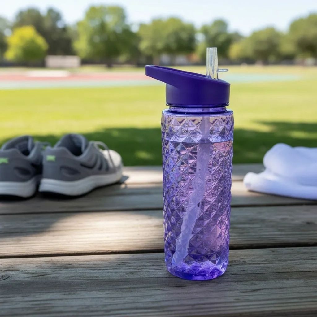 Garrafa Texturizada 700ml com Canudo Interno Tampa com Alça para Transporte Design Texturizado