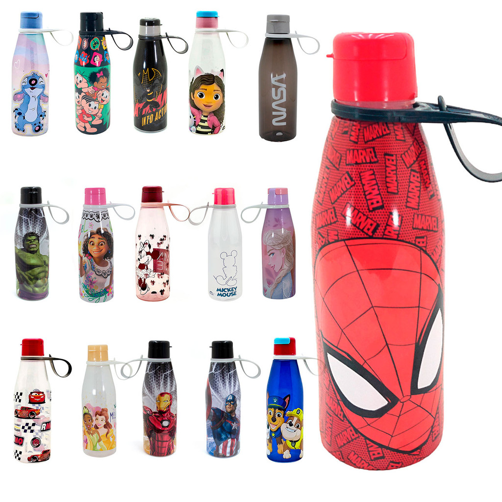 Garrafinha Infantil de Plástico Com Tampa Abre Fácil 530ml Plasútil