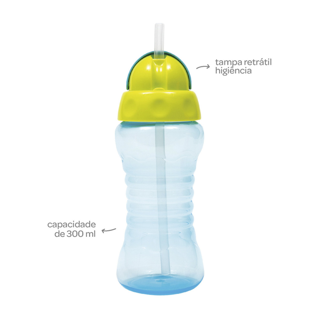Garrafinha Infantil Fresh Buba Azul Canudo Retrátil e Tampa
