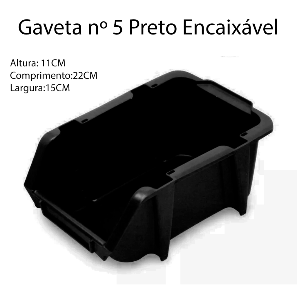 Gaveta Caixa Plástica Organizadora Encaixável Preta Vários Tamanhos Alta Durabilidade