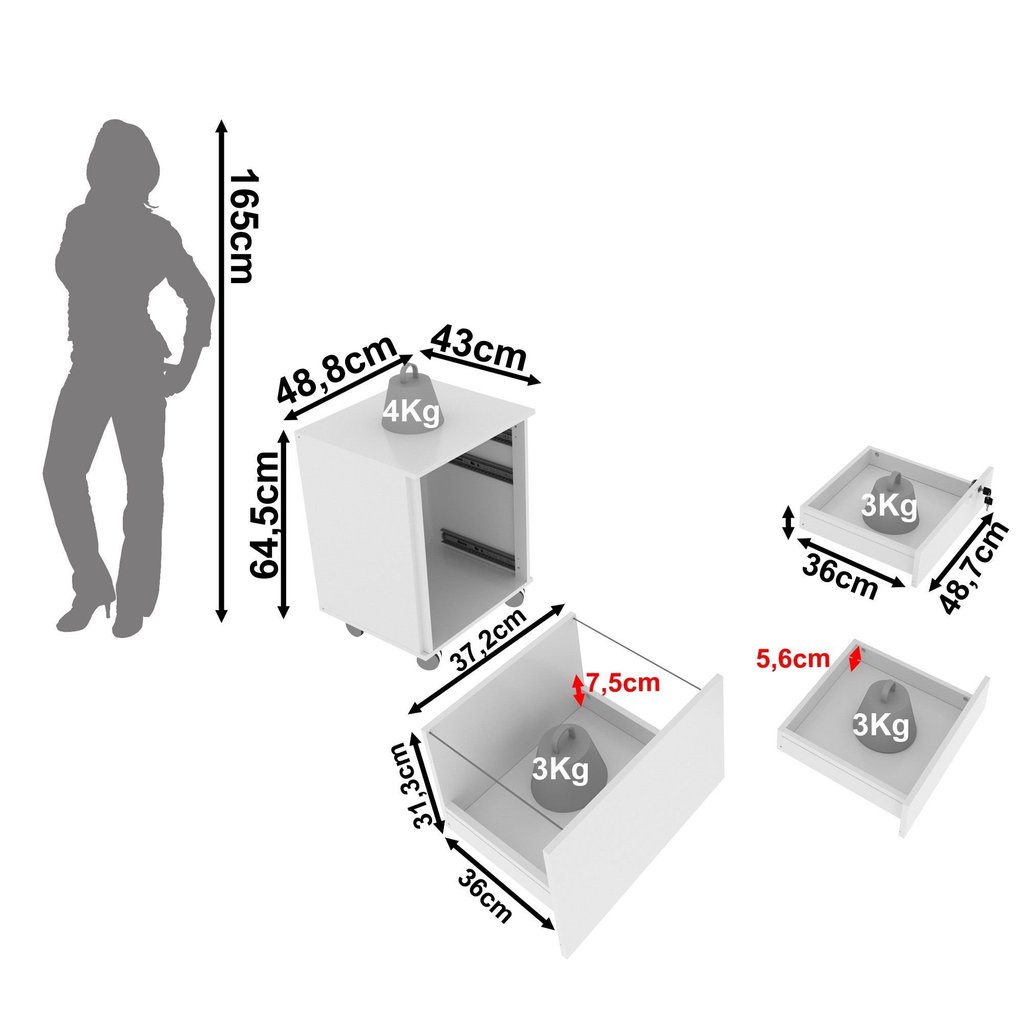 Gaveteiro Arquivo 48,8x64,5cm com Chave e Rodízio ME4148 Branco