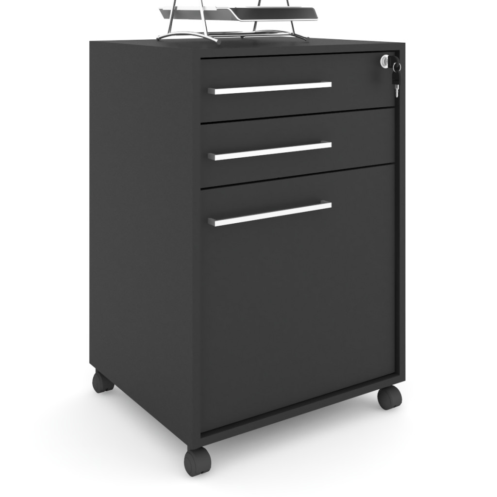 Gaveteiro Arquivo com Rodízios Sacramento 3 Gavetas com Chave Preto - Pnr Móveis
