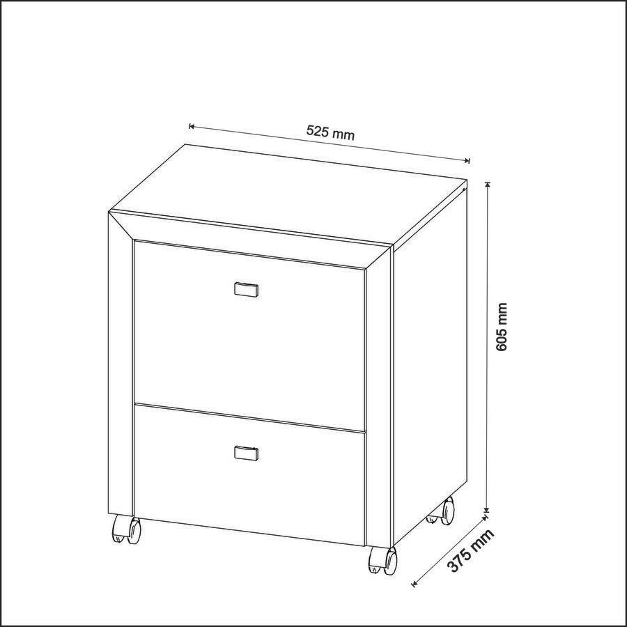 Gaveteiro Para Pastas Suspensas Linha Escritório, com desing moderno e super pratico, estrutura em MDP de 15mm, pintura com acabamento em BP (Fosco). Conta com 02 gavetas com corrediças metálicas que suportam até 3 kg cada, sendo 01 gaveta com suporte para pastas suspensas (pastas não inclusas), tampo superior suporta até 4 kg, acompanha 04 rodízios, este gaveteiro é uma peça avulsa da Linha Escritório Tecno Mobili, você pode adquirir as outras peças dessa linha que são vendidas separadamente, são varias peças pra você compor o melhor projeto pra seu escritório. Este móvel chegará em sua casa separado em 01 volume. Especificações: - Altura: 60,5 cm - Largura: 52,5 cm - Profundidade: 37,5 cm - Sistema de Montagem: Parafusos, cavilhas. - Recomendação de Limpeza: Limpar com pano seco para retirar o pó. Não aplicar produtos abrasivos. - Produtos de Enfeite e Eletrônicos Não Estão Inclusos.