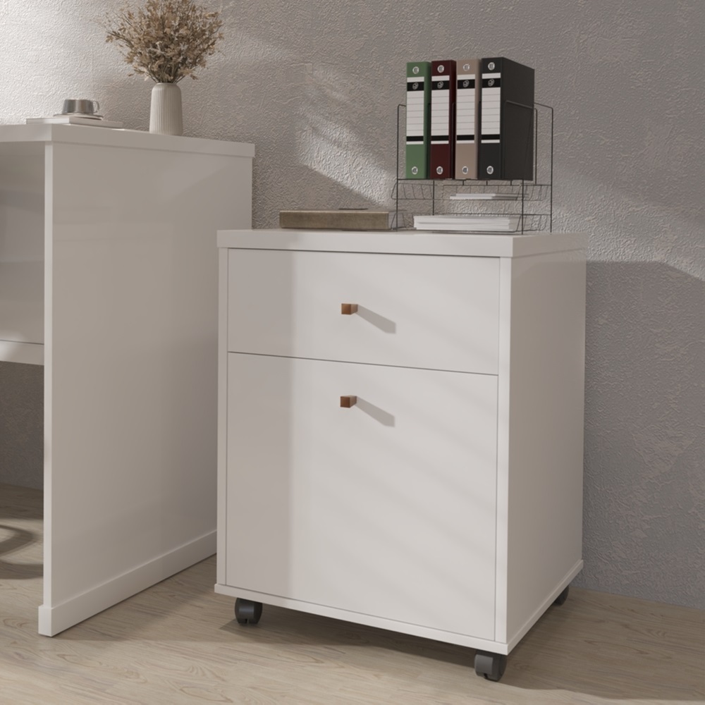 Já notaram que quanto mais gavetas melhor?! Pensando nisso, a ViaNossa desenvolveu o Gaveteiro Berlim para complementar o mobiliário de ambientes residenciais e escritórios com estilo e praticidade que garantem a mobilidade necessária para o uso no dia a dia. Amplo, espaçoso e compacto com material em MDP com acabamento impecável em pintura UV. Possui 2 gavetas com corrediças telescópicas, sendo uma a gaveta inferior para pastas suspensas e conta com base com 4 rodízios. Especificações Técnicas: - Material:MDP - Acabamento: Pintura UV; - Número de Prateleiras: Não possui; - Número de Gavetas: 2 Gavetas; - Número de Portas: Não possui; - Produto Precisa de Montagem? Sim; - Garantia: 3 Meses; - Instruções de Cuidado: Limpar com pano levemente umedecido; - Medidas do Gaveteiro (LarguraXProfundidadeXAltura): 46x37,5x60 cm. - Conteúdo da Embalagem: 01 Gaveteiro - Entregue em: 1 Volume. Observações Importantes: Produtos não devem ficar expostos diretamente ao sol, calor e umidades excessivas. Recomendações de Limpeza: Utilize somente pano seco ou levemente umedecido O produto pode sofrer alterações de tonalidade conforme o seu monitor Imagens meramente ilustrativas, produto não acompanha objetos de decoração e eletrônicos. Ao receber, verifique a embalagem. Se detectar violação na mesma, recuse o recebimento e nos contate. Não nos responsabilizamos, no ato da entrega, por subir escadas/elevadores. Nós não nos responsabilizamos pela montagem e por problemas causados pela montagem realizada por você ou montador contratado. Enfatizamos a recomendação aos nossos clientes de contratar um montador profissional. Eventualmente, se faltar qualquer peça ou acessório no produto, nos contate e enviaremos a peça/acessório sem custo adicional.