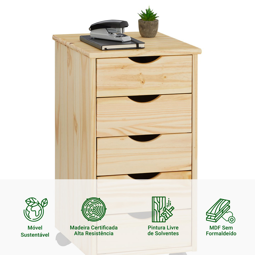 Gaveteiro Escritório Madeira Maciça 5 Gavetas Rodízios Lagos