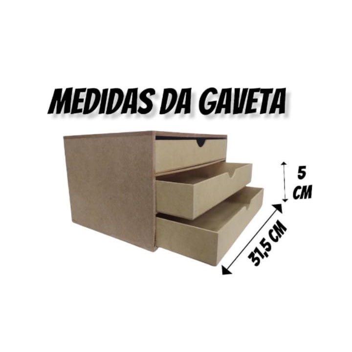 Gaveteiro Mdf Organizador de Mesa Decoração Escritório 3 Gavetas