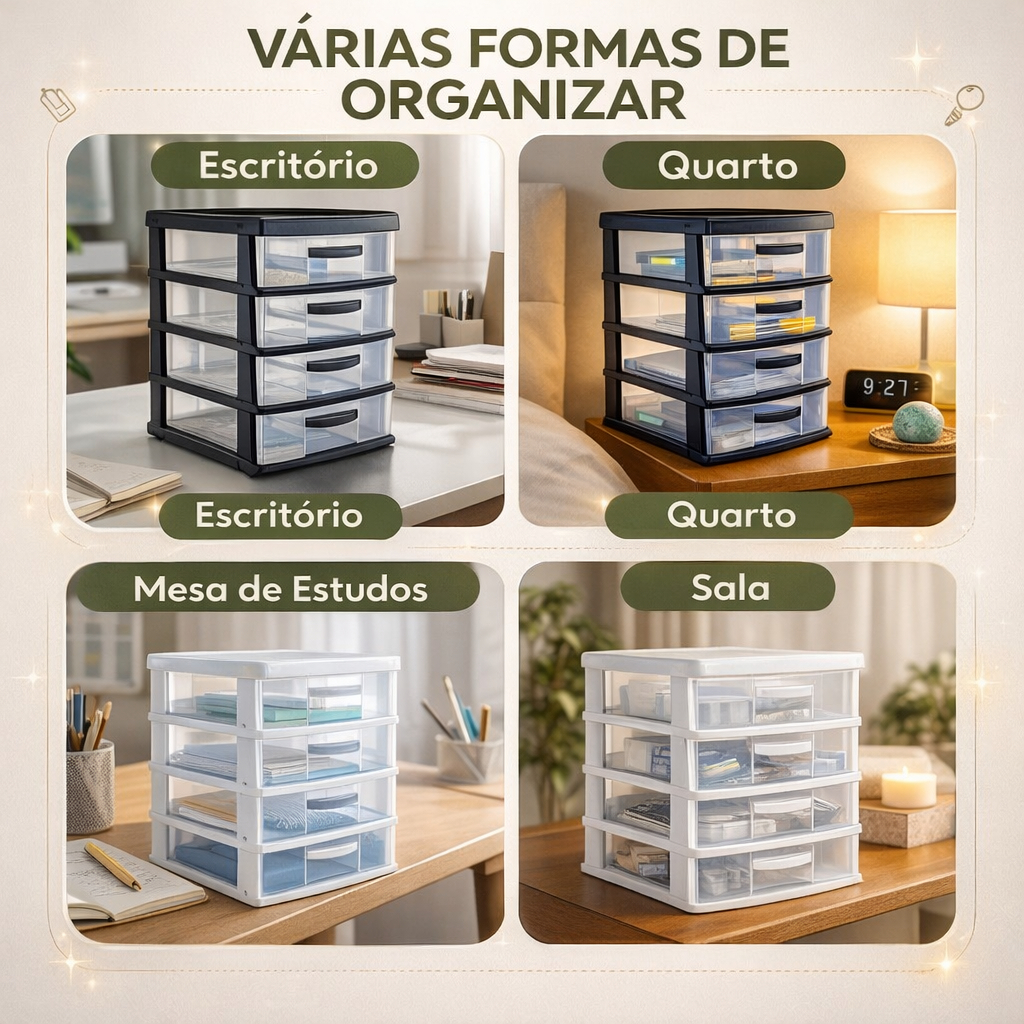 Gaveteiro Organizador de Mesa 4 Gavetas Multiuso em Plástico Resistente Jaguar