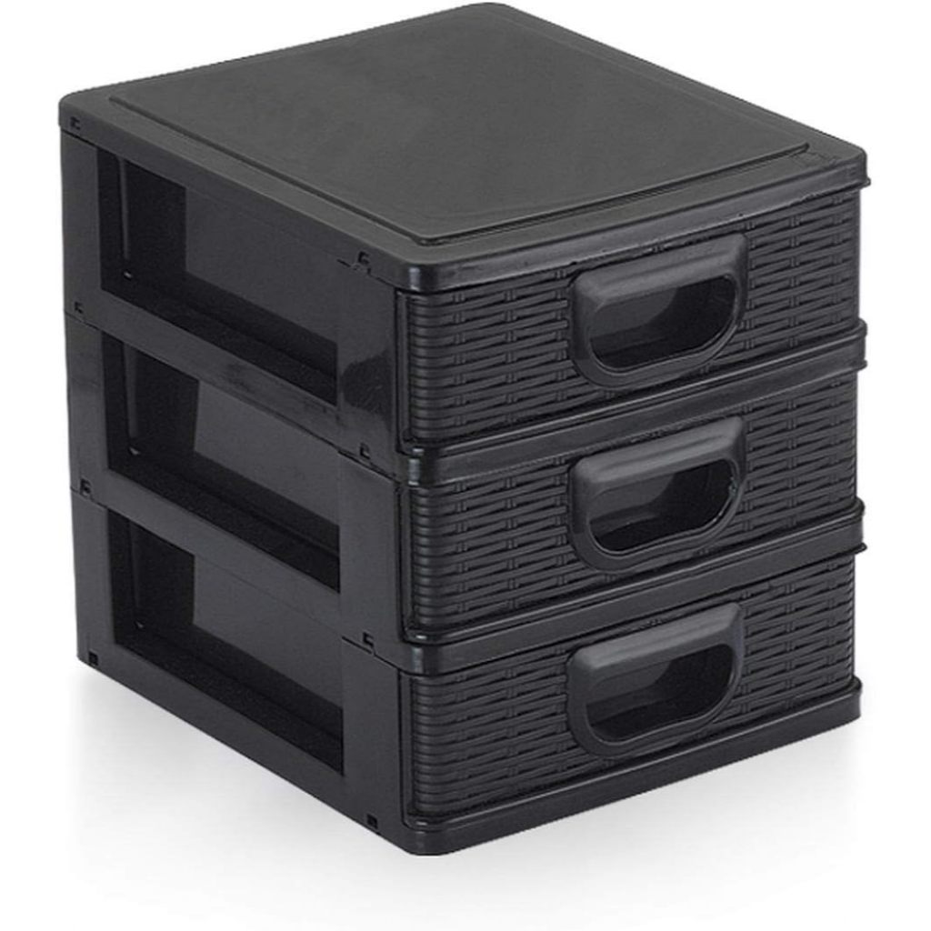 Gaveteiro Organizador De Mesa Micro Porta Tudo 3 Gavetas Cor Preto Branco Rosa e Cinza