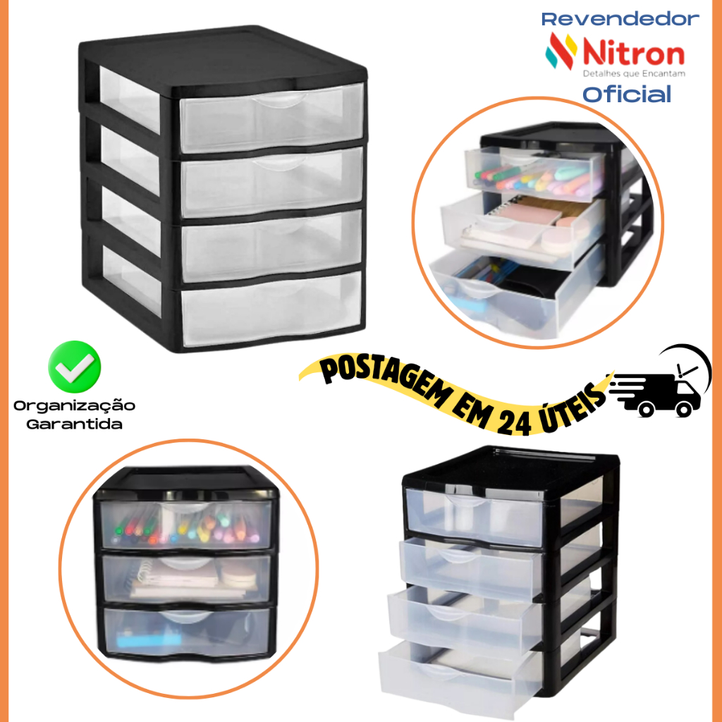 Gaveteiro Organizador Pequeno Plástico C/4 Gavetas Nitron
