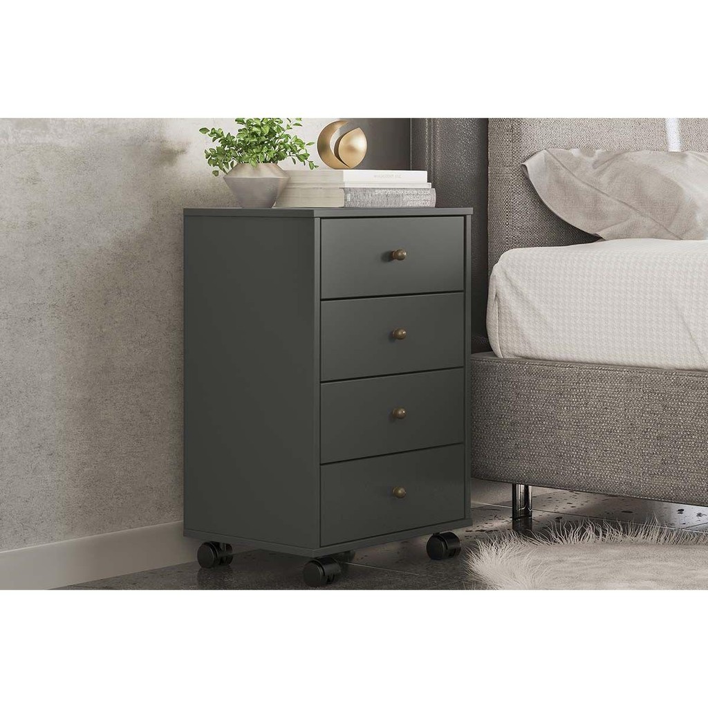 Gaveteiro p/ Escritório Presence c/ 4 Gavetas Amendola Touch/Grafito - Demóbile