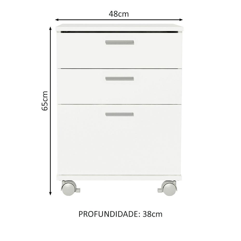 Gaveteiro para Banheiro Branco com 3 Gavetas e Rodinhas Madesa