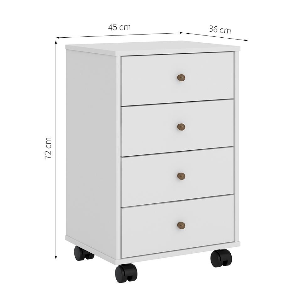 Que tal o Gaveteiro Presence?Manter o escritório organizado pode ser uma tarefa complicada, mas, com o Gaveteiro Presence, vai ficar bem mais fácil. Perfeito para complementar seu local de trabalho ou estudos, ele oferece espaço de armazenamento para você guardar materiais de trabalho, documentos ou outros objetos pessoais. Além de toda praticidade que o móvel traz ao dia a dia, o design também merece destaque: visual tradicional e coloração neutra dão um toque clássico à decoração do cômodo. Seu home office vai ficar completo! Cor: Branco Garantia em Meses: 3 Cores do Produto: Branco Instruções/Cuidados: Pano Seco Conteúdo da Embalagem: 1 Gaveteiro - Entregue em: 1 Volume Modelo: Presence Número de Volumes: 1 Material: O Gaveteiro Presence possui estrutura em MDP 15mm | gavetas com corrediça metálica e pés em rodízio. Já o acabamento é brilhante Material para Filtro: MDP Descrição do Tamanho: Altura: 72 cm | Largura: 45 cm | Profundidade: 36 cm Altura do Produto (cm): 72 Largura do Produto (cm): 45 Comprimento do Produto (cm): 36 Peso do Produto (Kg): 16 Produto precisa de Montagem?: Sim, sugerimos a contratação do nosso serviço de montagem (para os CEPs em que o serviço está disponível) ou de algum profissional experiente de sua preferência Divisória de Espaço: 0 Gaveta com Divisórias: 0 Gaveta com trava: 0 Sapatas: 0 Cabideiro: 0 Número de portas: 0 Número de gavetas: 4 Tipo de pé: Rodízio Tendências: Minimal Pop Material da dobradiça/trilho da porta: Não se Aplica Material da estrutura: MDP Material do fundo: HDF Material do puxador: PVC Necessita fixação na parede: Não Possui chaves: Não Possui espelho/vidro: Não Tipo da Corrediça da gaveta: Roldana Tipo de Porta: Não possui Material do Tampo: MDP Material dos pés: Plástico PROFUNDIDADE x LARGURA x ALTURA: 36 x 45 x 72 Fornecedor: Demobile Industria de Moveis Ltda Baterias são necessárias?: Não Certificação de teste externa: Não Componentes incluídos: Não Is Fragile: Não Número da peça: Não Produto: Gaveteiro Local(is) Indicado(s): Chão