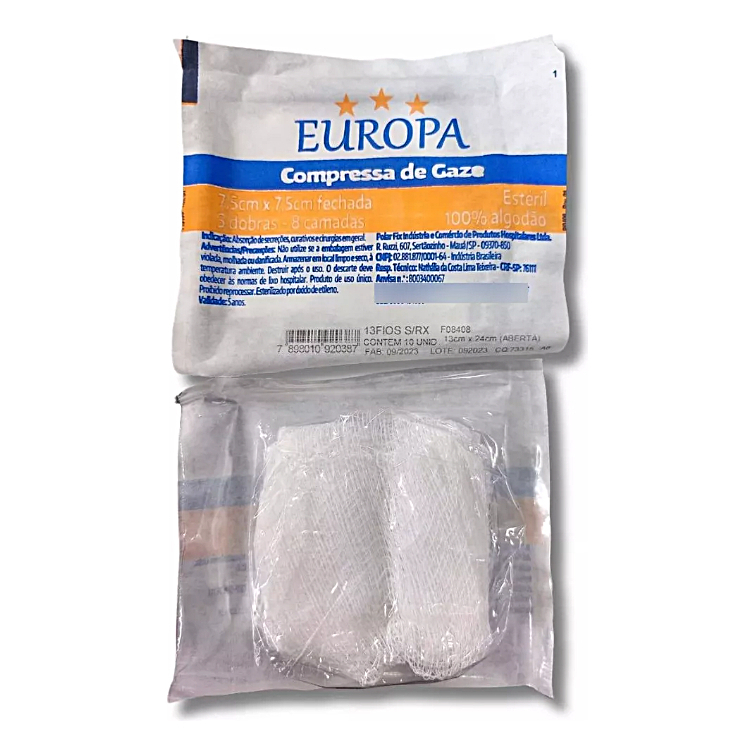 Gaze Estéril Para Curativos - Kit C/10 Pacotes - Total 50 Unidades