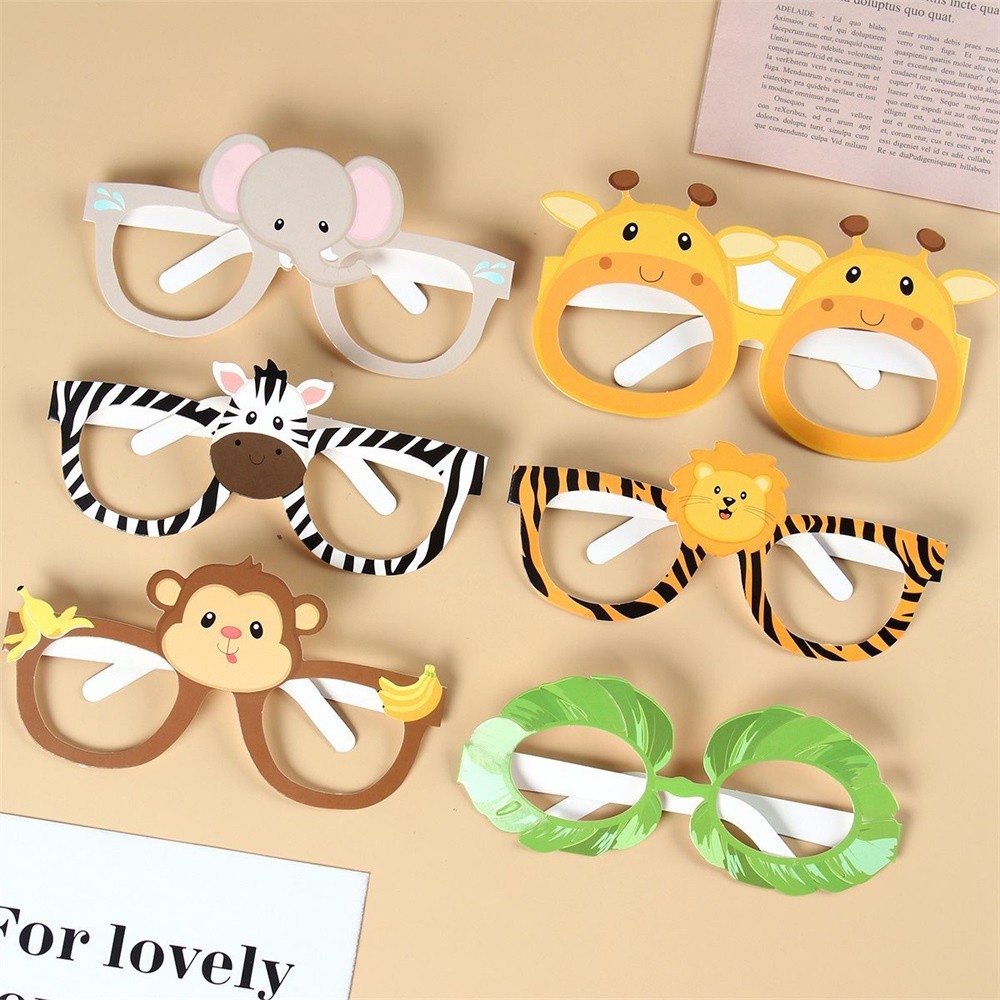GeeParty 6 Pçs/Set Tema Animal Dos Desenhos Animados Óculos De Papel Máscara De Festa Para Crianças Selva Safari Fontes tem frete grátis?