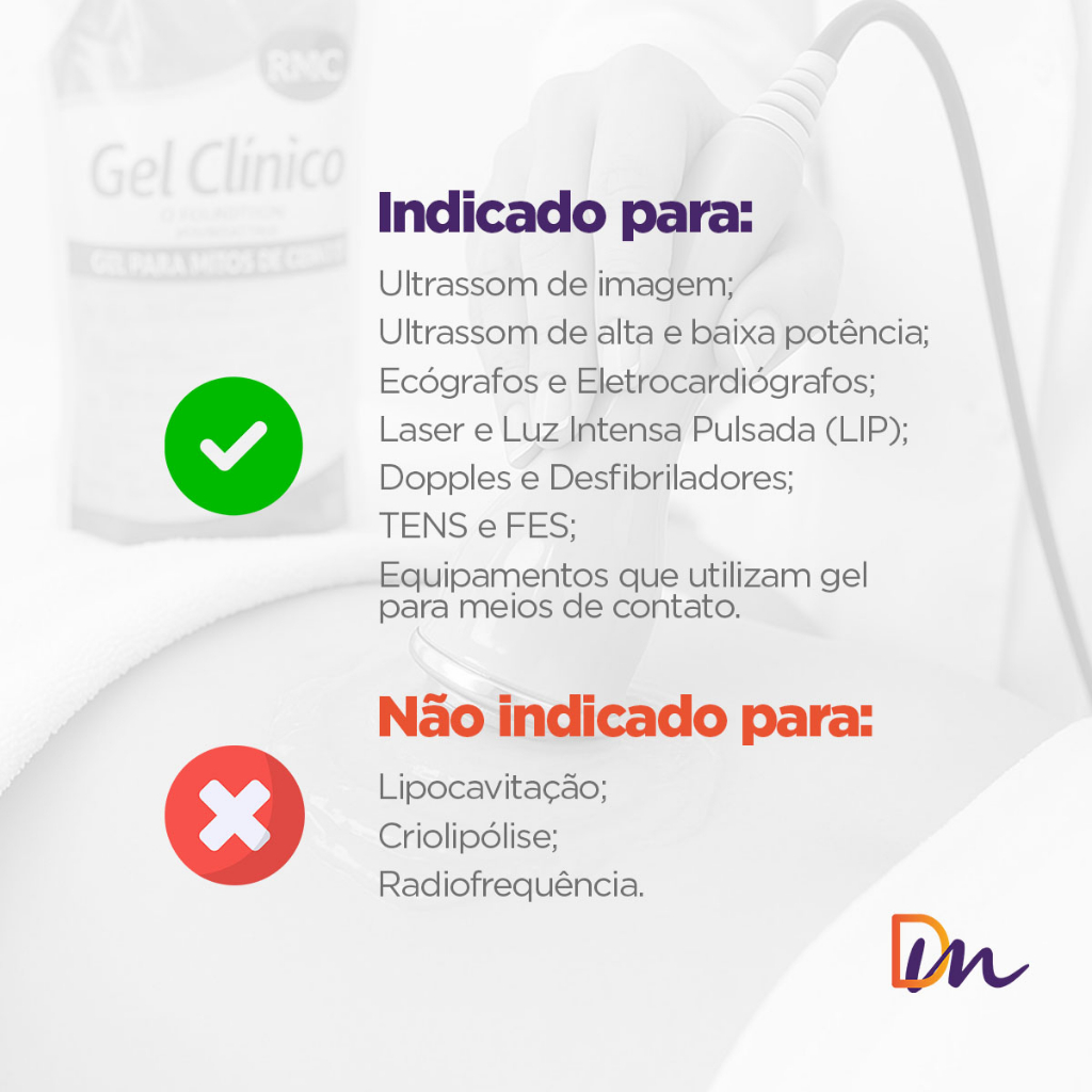 GEL CONDUTOR ORIGINAL RMC INCOLOR 5KG + RECIPIENTE 300G – MÁXIMA CONDUTIVIDADE, TESTADO E APROVADO O Gel Condutor RMC Incolor foi desenvolvido para garantir máxima eficiência na condução de impulsos elétricos, atendendo a diversas áreas como exames médicos, tratamentos estéticos e fisioterapêuticos. Produzido com matérias-primas de alta qualidade, é indicado pelos principais fabricantes de equipamentos médicos e estéticos. INDICAÇÕES Ideal para uso em exames de eletrocardiograma, ultrassom de imagem e estética (alta e baixa potência), ecógrafos, dopplers, desfibriladores, TENS, FES, laser, luz intensa pulsada (LIP), bisturis elétricos e demais aparelhos de eletroterapia que utilizem gel como meio de contato. PROPRIEDADES Excelente condutividade elétrica. Textura deslizante e viscosidade ideal (não escorre). Hipoalergênico, hidratante e não irrita a pele. Atóxico, inodoro, pH neutro, hidrossolúvel e de fácil remoção. Não mancha roupas, não deixa resíduos e não é gorduroso. Livre de sal e álcool, não danifica transdutores e prolonga a vida útil dos equipamentos. Dermatologicamente testado e aprovado pelo Instituto Adolfo Lutz. COMPATIBILIDADE Este produto é compatível com diversos equipamentos, incluindo: Ibramed: Neurodyn (todas as versões), Neurovector, Lyra, Nèartek, Heccus Turbo, Sonofocus, Sonopeel, Sonopulse (todas as versões), Plasmed HTM: Fisio Stim, Híbridi, Light Pulse, Sonic Compact (1 MHz, 3 MHz, Maxx), Stimulus (todas as versões), Ultrafocus, Vibria, Fono Stim KLD: Hygiadermo Crystal, Manthus Start, Sycor, Kavys Medical San: Narniah, Lipocavity (todas as versões), Ethernia Cold (Tekah e Smart), Ultraplace Adélia: Claris, Dual Soon, Lipo Soon, Velox Outros: MaxiFlash ITENS INCLUSOS 01- Gel Bag RMC Incolor 5kg. 01- Recipiente 300g.