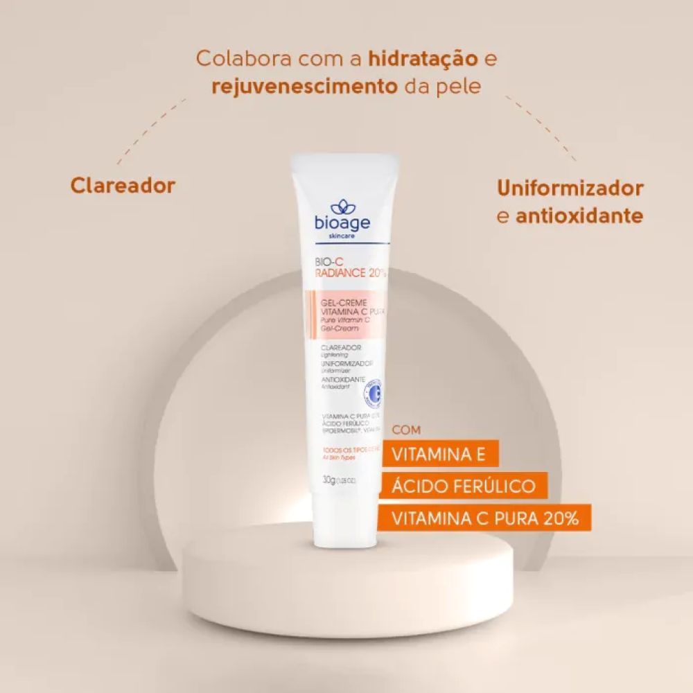Gel Creme Clareador com Vitamina C Pura Bio-C Radiance 20% - 30g Bioage