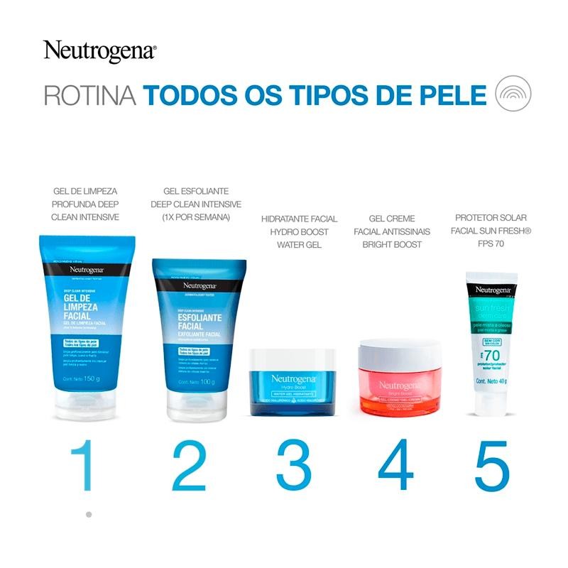 O Gel De Limpeza Facial Neutrogena Deep Clean Intensive penetra profundamente nos poros, eliminando as impurezas e a oleosidade. Deixa a pele completamente limpa, removendo resíduos que obstruem os poros, sem ressecar. Indicado para todos os tipos de pele.