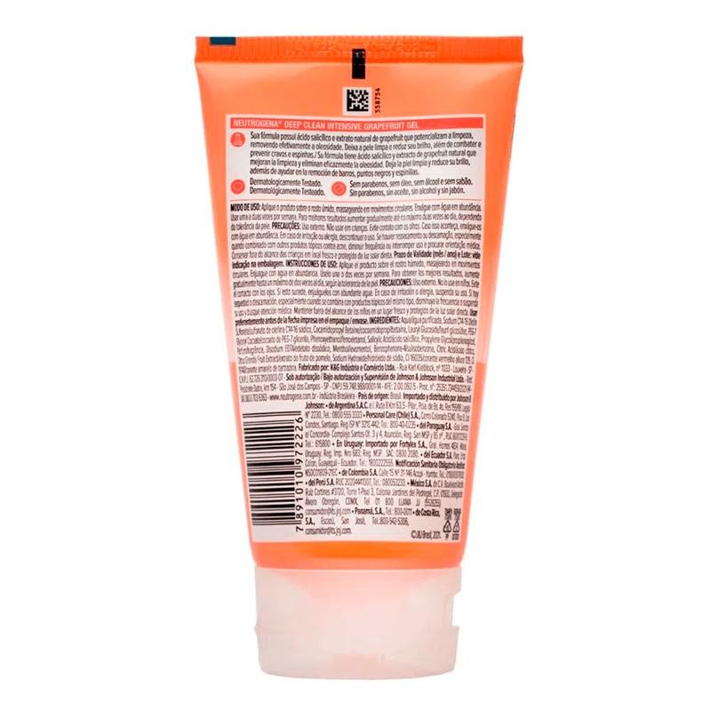 O Gel De Limpeza Facial Neutrogena Deep Clean Intensive Grapefruit limpa profundamente os poros, removendo 99% das impurezas e a oleosidade. Sua fórmula combina o ativo beta-hidróxido com extrato natural de grapefruit para uma limpeza mais profunda. Indicado para peles mistas e oleosas.