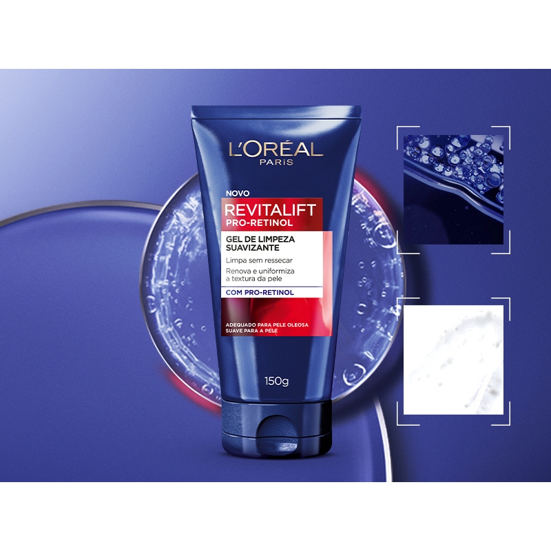 Desenvolvido pelos laboratórios de L'Oréal Paris e validado com dermatologistas para renovar a textura da pele, o Gel de Limpeza Suavizante Revitalift Pro-Retinol é o gel de limpeza facial enriquecido com retinol. Ele possui alto poder de limpeza da pele, uniformizando a textura e eliminando impurezas, tudo isso sem ressecar o rosto. O Gel de Limpeza Suavizante Revitalift Pro-Retinol é adaptado para todos os tipos de pele, incluindo as mistas e oleosas.