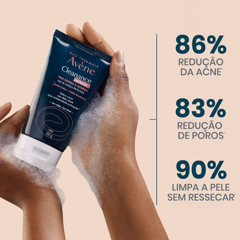 Gel de Limpeza Profunda Avene Cleanance Intense Pele Oleosa A Acneica Cleanance intense é um gel de limpeza diária profunda indicado para pele oleosa ou com tendência a acne. Possui uma combinação e